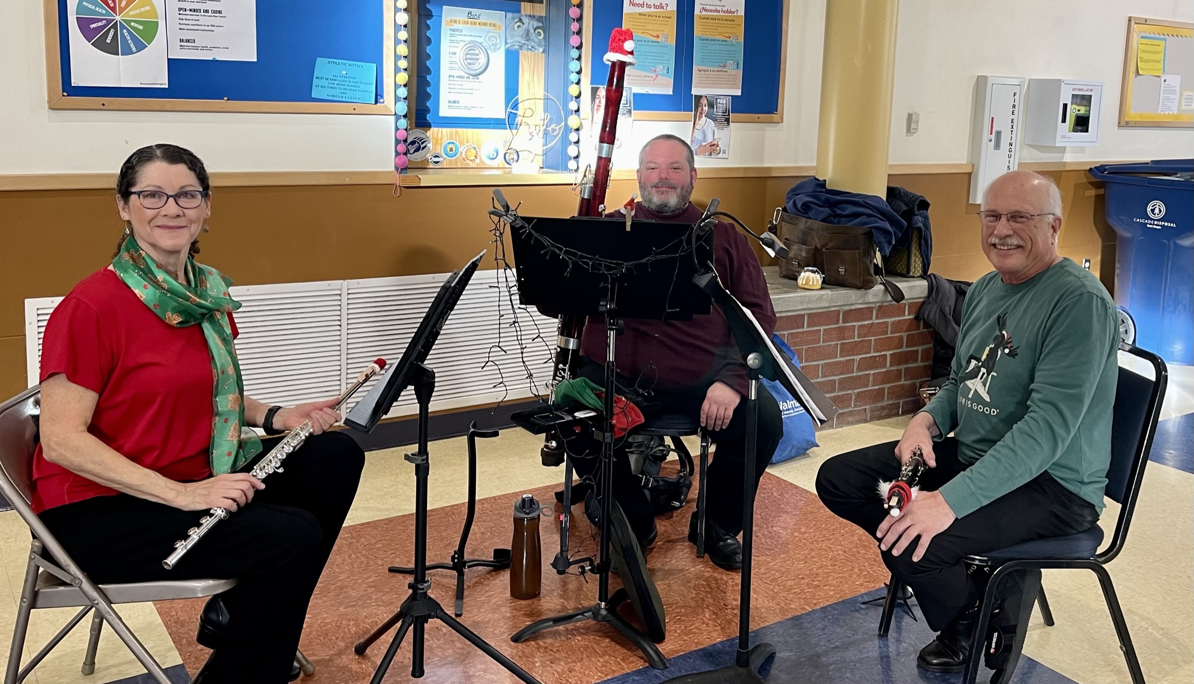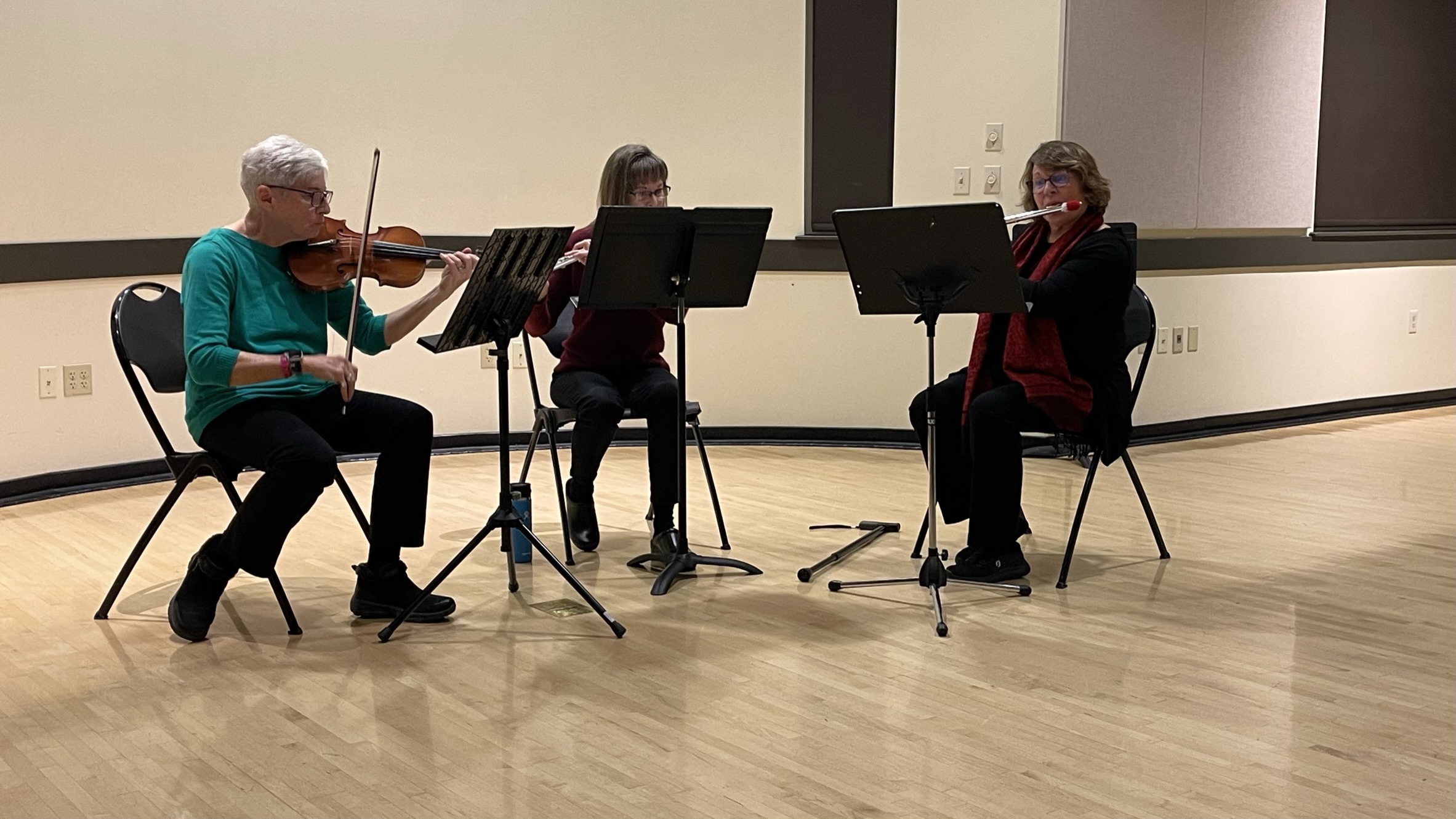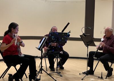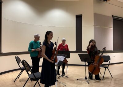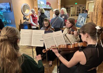 Photos from our community performances from the 2023 holiday season. We put on a chamber music concert at the Bend Senior Center, and two small groups played at the Nutcracker Ballet and a fundraiser for the Sisters Fire Department in Aspen Lakes.
